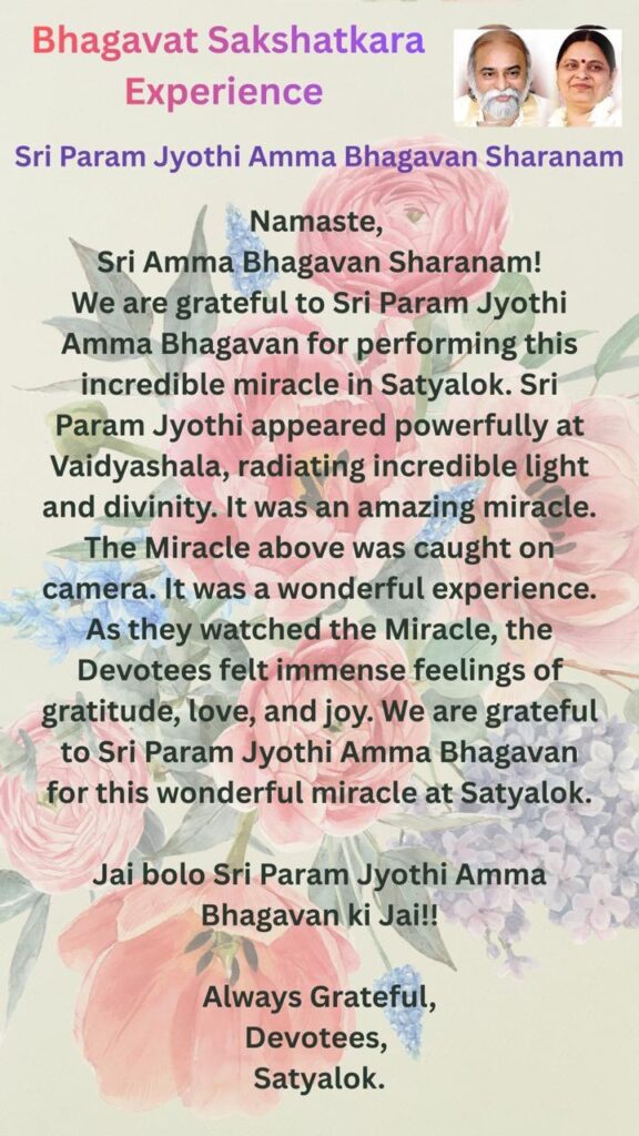 サティヤローカにおいてこの驚くべき奇跡をお示しくださったシュリ・パラム・ジョッティ・アンマ・バガヴァンに感謝申し上げます。