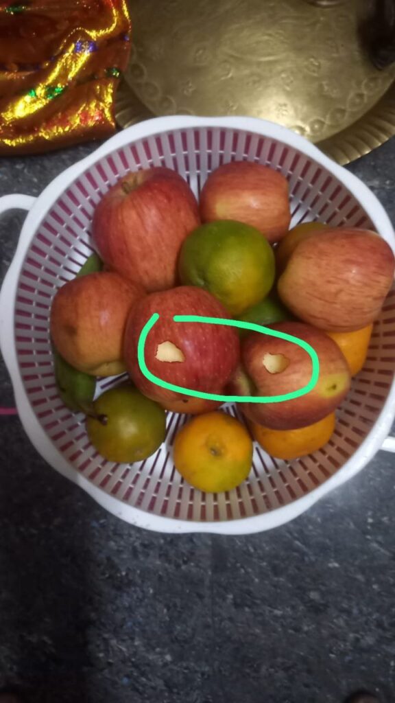 プージャ ルームに戻ると、親愛なるアンマ バガヴァンが2つのリンゴを それぞれ少しずつかじられていたのを目の当たりにし すごく嬉しくなりました。