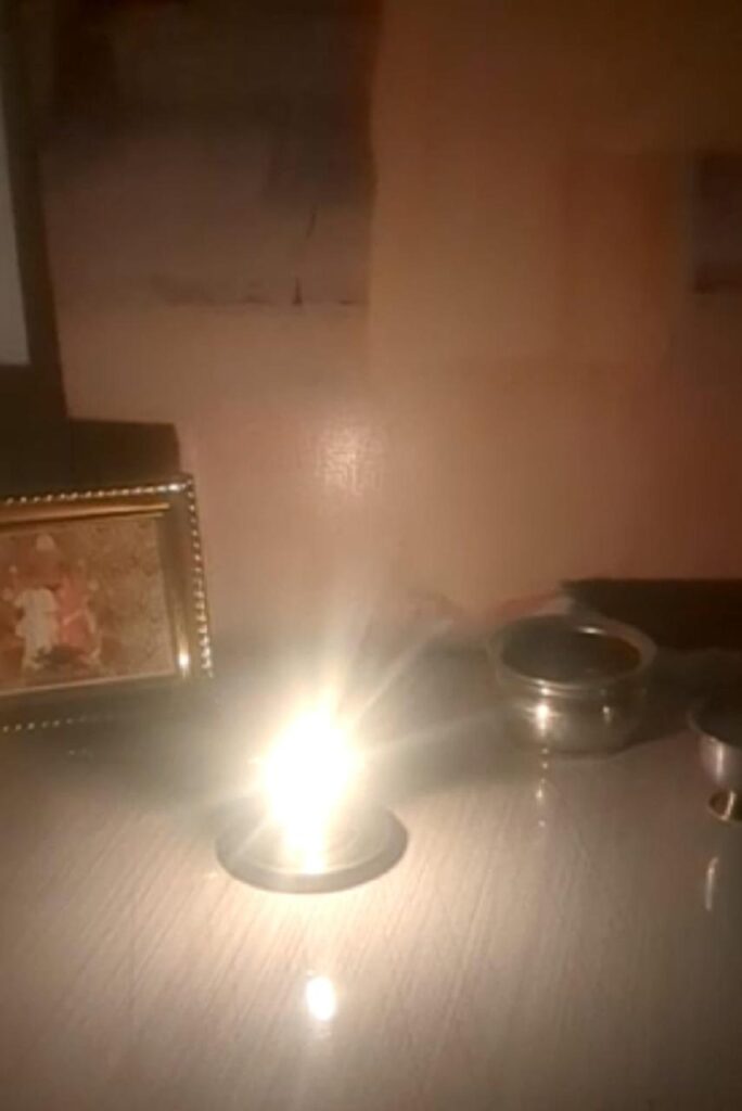 日課として行われていたプロセスの最中に、シュリ ムルティの前に置かれていたディヤ(オイルランプ)の中に シュリ パラムジョッティが顕現なさいました。