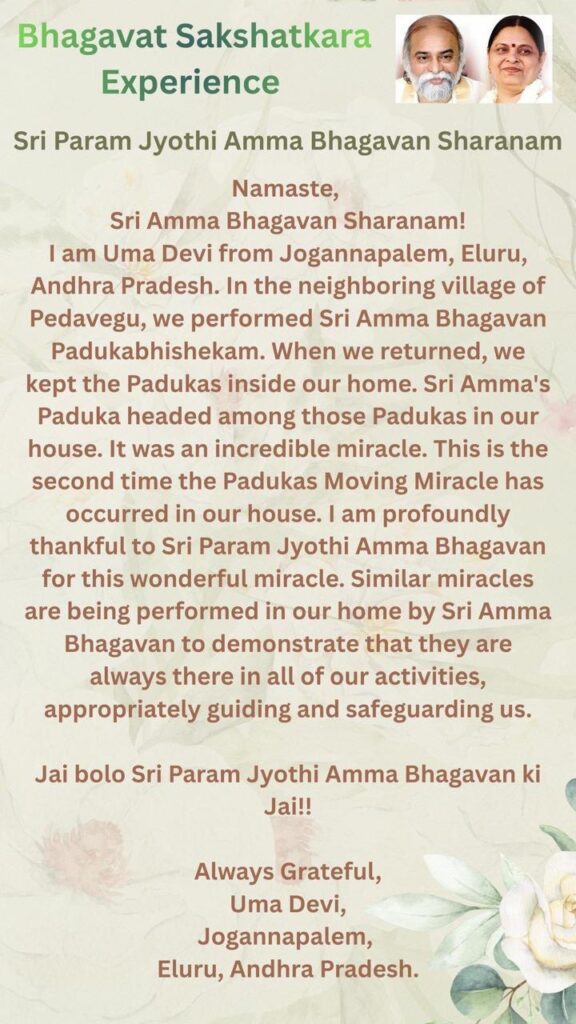 同様の奇跡が我が家ではシュリ・アンマ・バガヴァンによって行われています。