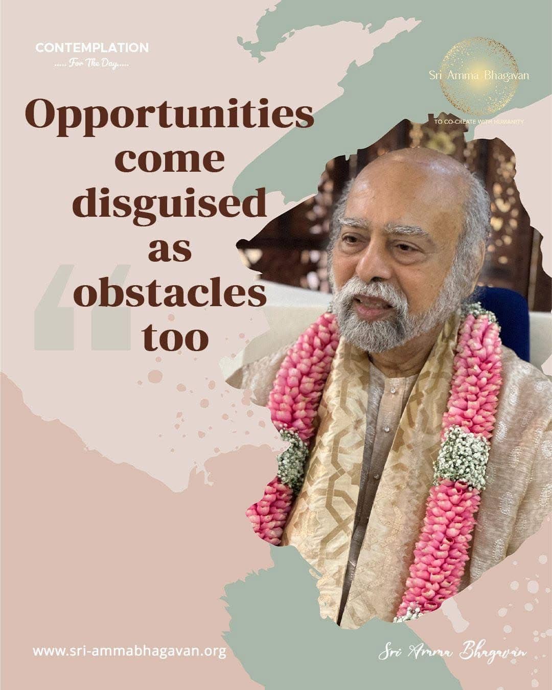 ホーム > シュリ・アンマ・バガヴァンによる教え > 今日の黙想 > 機会は、障害に見せかけてやって来ることもあります 2026年3月18日 2026年3月22日 2026/3/18 今日の黙想 機会は、障害のように見せかけてやって来ることもあります シュリ アンマ バガヴァン CONTEMPLATIONFor The Day Opportunitiescomedisguised asobstacles too. Sri Amma Bhagavan 初めての方にもおすすめ! 💗理由のない喜びが溢れ出す 3時間のオンラインコースに参加しませんか? 3時間コース『ギフト・オブ・アーナンダ』最新の開催情報やお申込みはこちら。 外に幸せを探すのではなく、内側から溢れる理由のない喜び「アーナンダ」を体験する3時間コース。心が軽くなり、自然と人間関係も整う、初めての方におすすめのコースです。 続きを見る Post Share LINE note URLコピー -今日の黙想