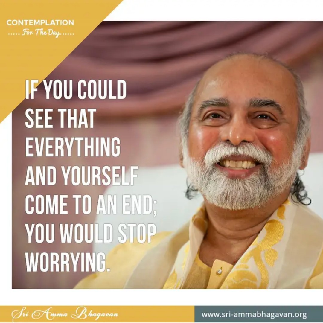Top > シュリ・アンマ・バガヴァンによる教え > 今日の黙想 > もしあなたが、全ての物事やあなた自身に終わりが来ることがわかれば、あなたは心配することを止めるでしょう。 2023年10月26日 2025年7月20日 2023/10/26 今日の黙想 もしあなたが、全ての物事やあなた自身に終わりが来ることがわかれば、あなたは心配することを止めるでしょう。 シュリ アンマ バガヴァン CONTEMPLATIONFor The Day IF YOU COULDSEE THATEVERYTHINGAND YOURSELFCOME TO AN END,YOU WOULD STOPWORRYING. Sri Amma Bhagavan Post Share LINE note URLコピー -今日の黙想