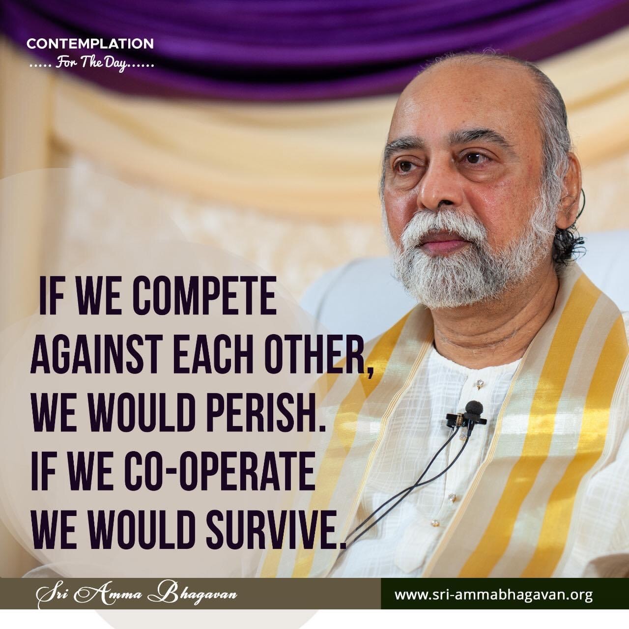 Top > シュリ・アンマ・バガヴァンによる教え > 今日の黙想 > もし競い合うなら私達は滅びるでしょう。もし協力するなら私達は生き残るでしょう。 2023年10月30日 2025年7月20日 2023/10/30 今日の黙想 もし競い合うなら私達は滅びるでしょう。もし協力するなら私達は生き残るでしょう。 シュリ アンマ バガヴァン CONTEMPLATIONFor The Day IF WE COMPETEAGAINST EACH OTHER,WE WOULD PERISH.IF WE CO-OPERATEWE WOULD SURVIVE. Sri Amma Bhagavan Post Share LINE note URLコピー -今日の黙想