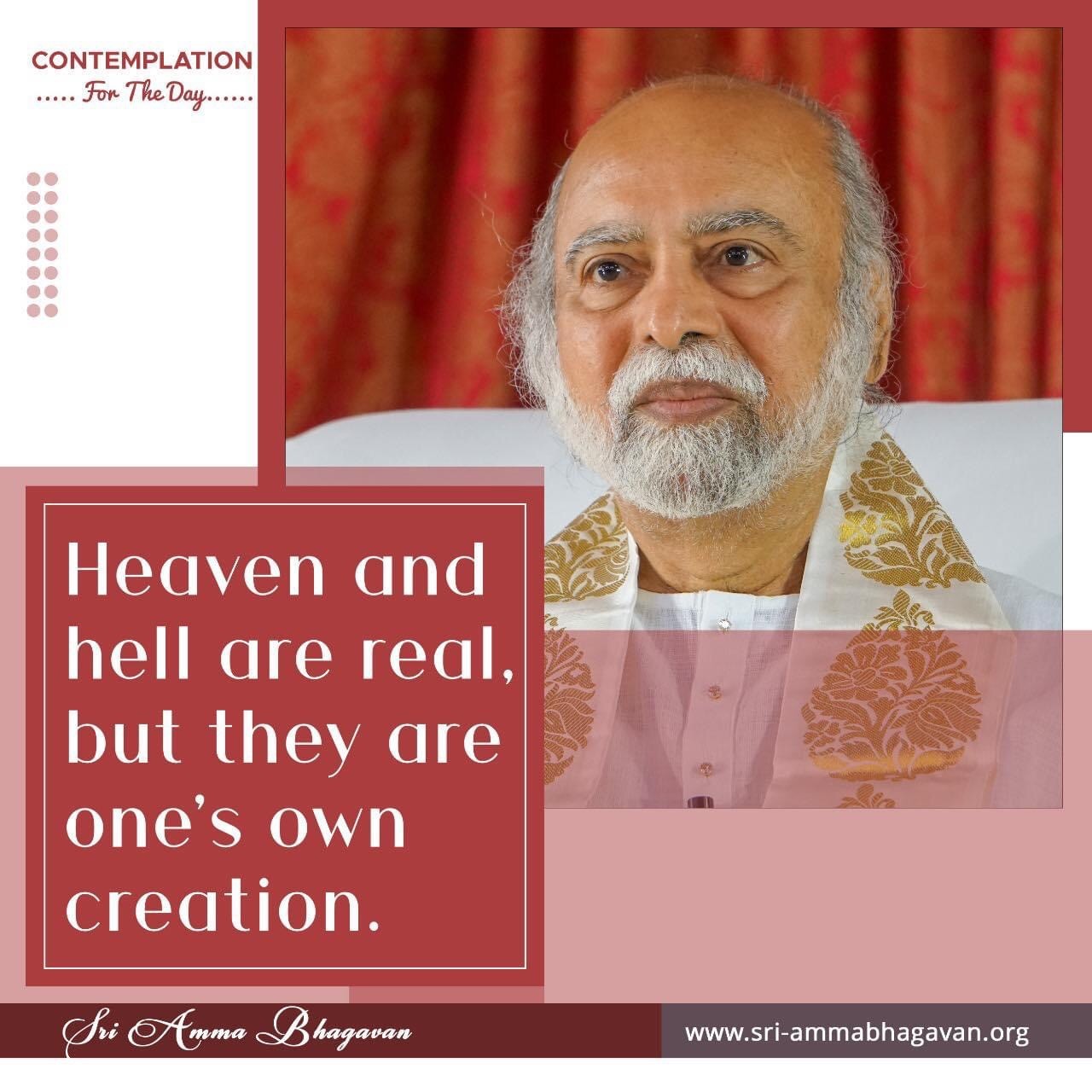 Top > シュリ・アンマ・バガヴァンによる教え > 今日の黙想 > 天国と地獄は本物です。でもそれらは自分自身の創造物です。 2023年10月5日 2025年7月20日 2023/10/5 今日の黙想 天国と地獄は本物です。でもそれらは自分自身の創造物です。 シュリ アンマ バガヴァン CONTEMPLATIONFor The Day Heaven andhell are real,but they areone's owncreation. Sri Amma Bhagavan Post Share LINE note URLコピー -今日の黙想 -創造