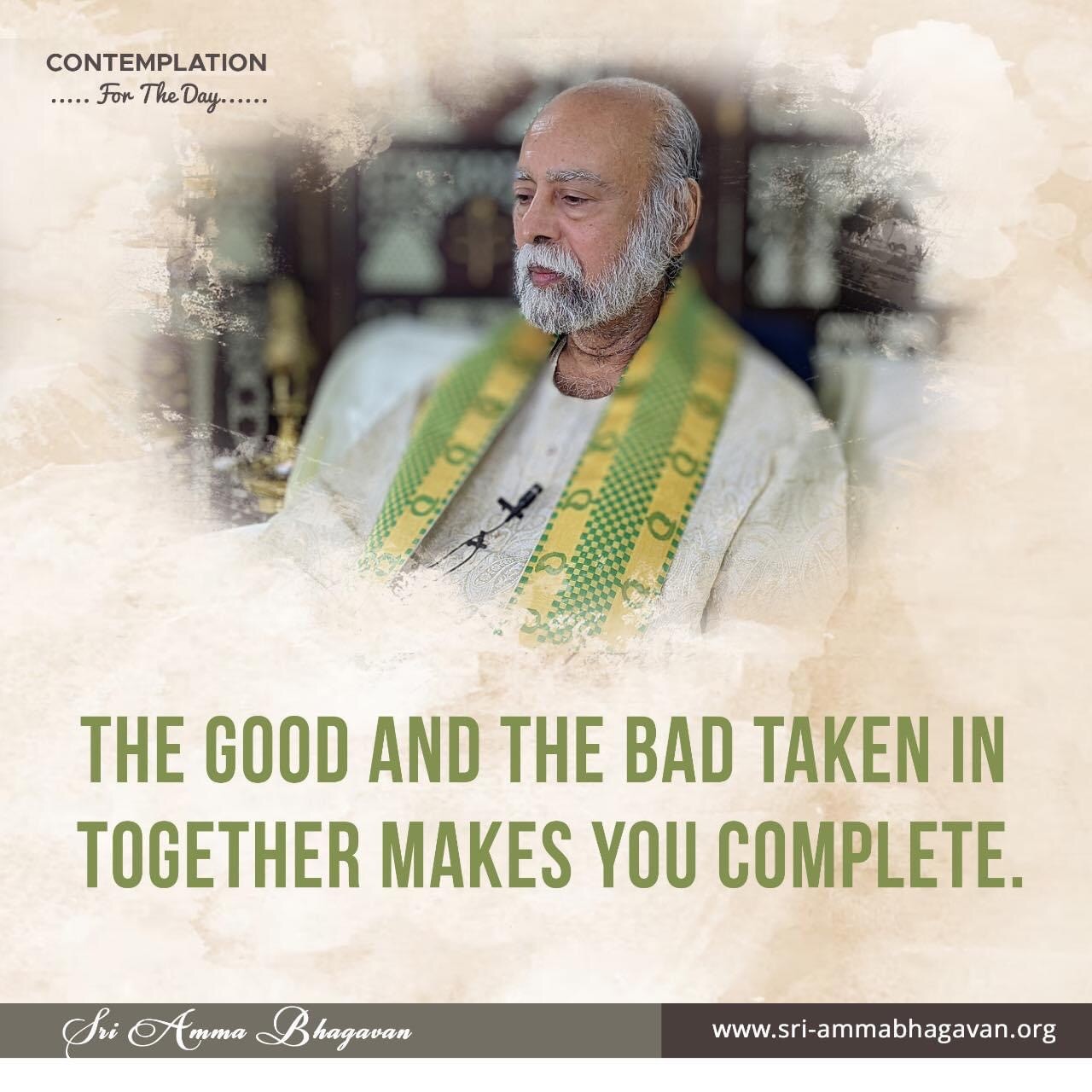 Top > シュリ・アンマ・バガヴァンによる教え > 今日の黙想 > 良いも悪いも合わせて取り入れられることで、あなたは完全になります。 2023年11月9日 2025年7月20日 2023/11/9 今日の黙想 良いも悪いも合わせて取り入れられることで、あなたは完全になります。 シュリ アンマ バガヴァン CONTEMPLATIONFor The Day THE GOOD AND THE BAD TAKEN INTOGETHER MAKES YOU COMPLETE. Sri Amma Bhagavan Post Share LINE note URLコピー -今日の黙想
