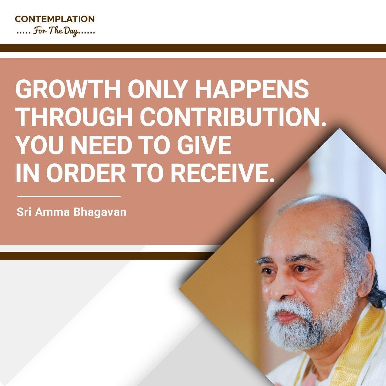 Top > シュリ・アンマ・バガヴァンによる教え > 今日の黙想 > 成長は、貢献を通してだけ起こります。受け取るためには、与える必要があります。 2023年3月11日 2025年7月20日 2023/3/11 今日の黙想 成長は、貢献を通してだけ起こります。受け取るためには、与える必要があります。 −シュリ アンマ バガヴァン CONTEMPLATIONFor The Day GROWTH ONLY HAPPENSTHROUGH CONTRIBUTION.YOU NEED TO GIVEIN ORDER TO RECEIVE. Sri Amma Bhagavan Post Share LINE note URLコピー -今日の黙想