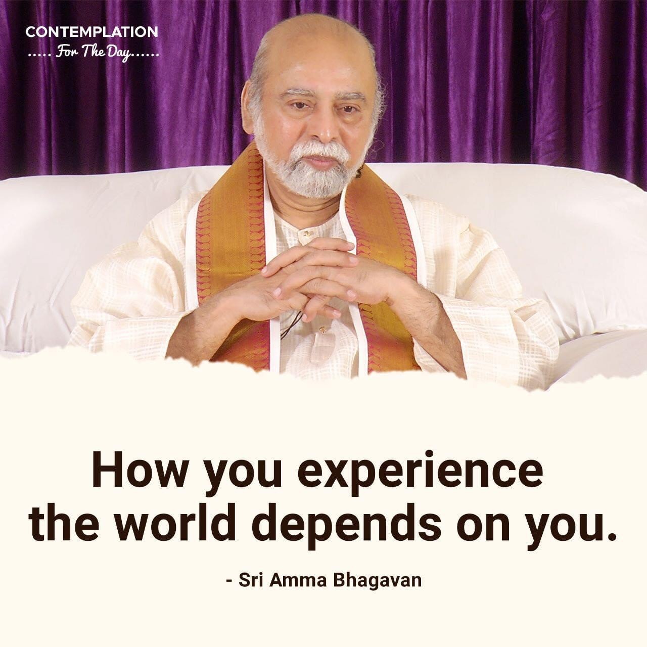 Top > シュリ・アンマ・バガヴァンによる教え > 今日の黙想 > 世界をいかに体験するかは、あなたにかかっています。 2023年4月12日 2025年7月20日 2023/4/12 今日の黙想 世界をいかに体験するかは、あなたにかかっています。 −シュリ アンマ バガヴァン CONTEMPLATIONFor The Day How you experiencethe world depends on you. Sri Amma Bhagavan Post Share LINE note URLコピー -今日の黙想 -体験