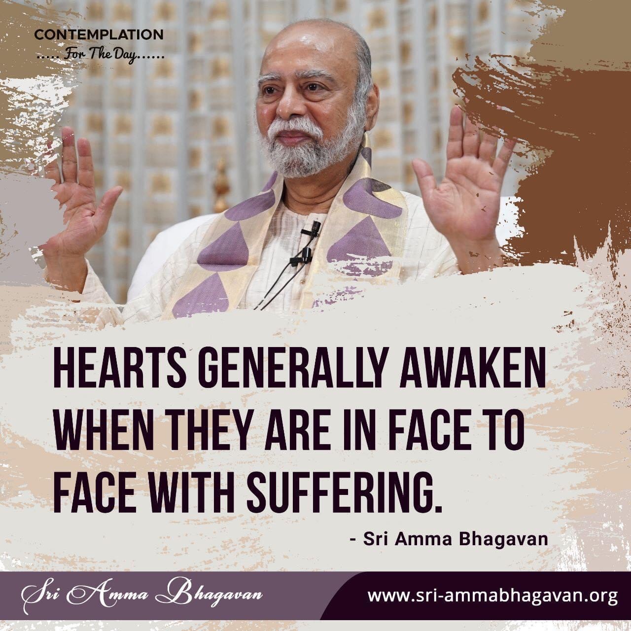 Top > シュリ・アンマ・バガヴァンによる教え > 今日の黙想 > ハートは、一般的に苦しみと面と向かっている時に目覚めます。 2023年5月15日 2025年7月20日 2023/5/15 今日の黙想 ハートは、一般的に苦しみと面と向かっている時に目覚めます。 −シュリ アンマ バガヴァン CONTEMPLATIONFor The Day HEARTS GENERALLY AWAKENWHEN THEY ARE IN FACE TOFACE WITH SUFFERING. - Sri Amma Bhagavan Post Share LINE note URLコピー -今日の黙想 -ハート, 目覚め, 苦しみ