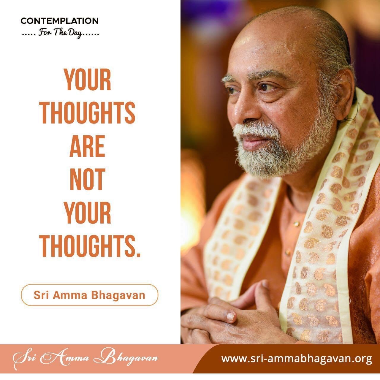 Top > シュリ・アンマ・バガヴァンによる教え > 今日の黙想 > あなたの考えは、あなたの考えではありません。 2023年5月17日 2025年7月20日 2023/5/17 今日の黙想 あなたの考えは、あなたの考えではありません。 −シュリ アンマ バガヴァン CONTEMPLATIONFor The Day YOURTHOUGHTSARENOTYOURTHOUGHTS. ‐Sri Amma Bhagavan Post Share LINE note URLコピー -今日の黙想 -思考