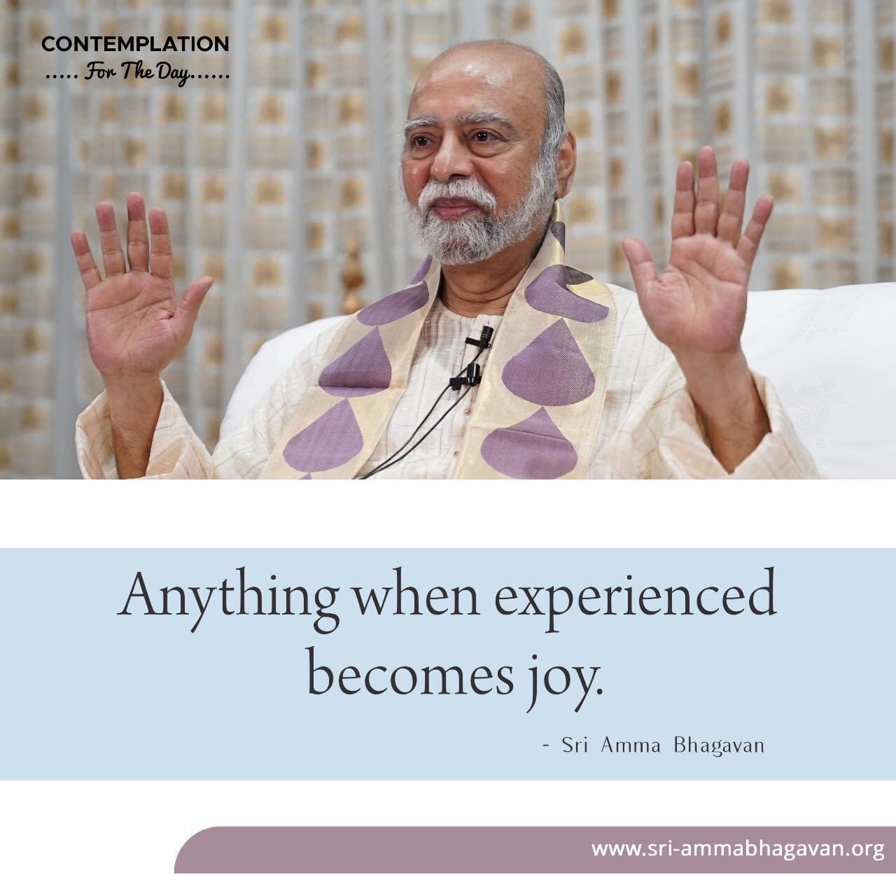 Top > シュリ・アンマ・バガヴァンによる教え > 今日の黙想 > 何であれ、体験されるとき、喜びになります。 2023年9月12日 2025年7月20日 2023/9/12 今日の黙想 何であれ、体験されるとき、喜びになります。 -シュリ アンマ バガヴァン CONTEMPLATIONFoy The Day Anything when experiencedbecomes joy. ‐Sri Amma Bhagavan Post Share LINE note URLコピー -今日の黙想 -体験, 喜び