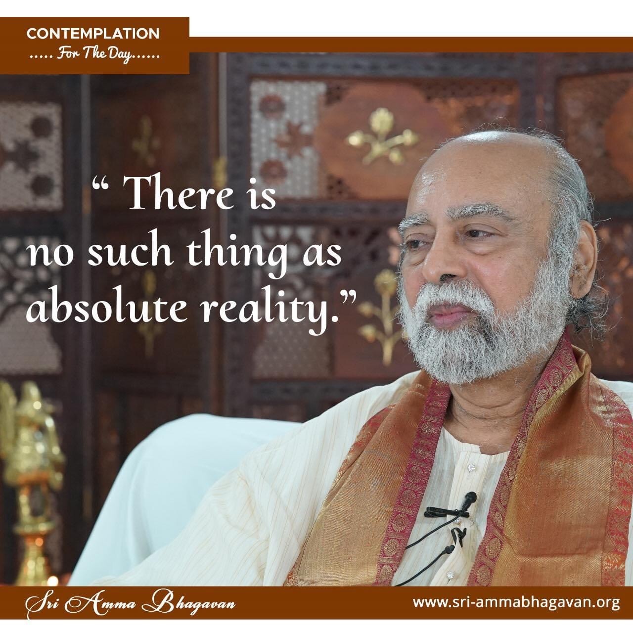 Top > シュリ・アンマ・バガヴァンによる教え > 今日の黙想 > 絶対的な現実などというものはありません。 2023年9月25日 2025年7月20日 2023/9/25 今日の黙想 絶対的な現実などというものはありません。 シュリ アンマ バガヴァン CONTEMPLATIONFor The Day " There isno such thing asabsolute reality." Sri Amma Bhagavan Post Share LINE note URLコピー -今日の黙想 -現実