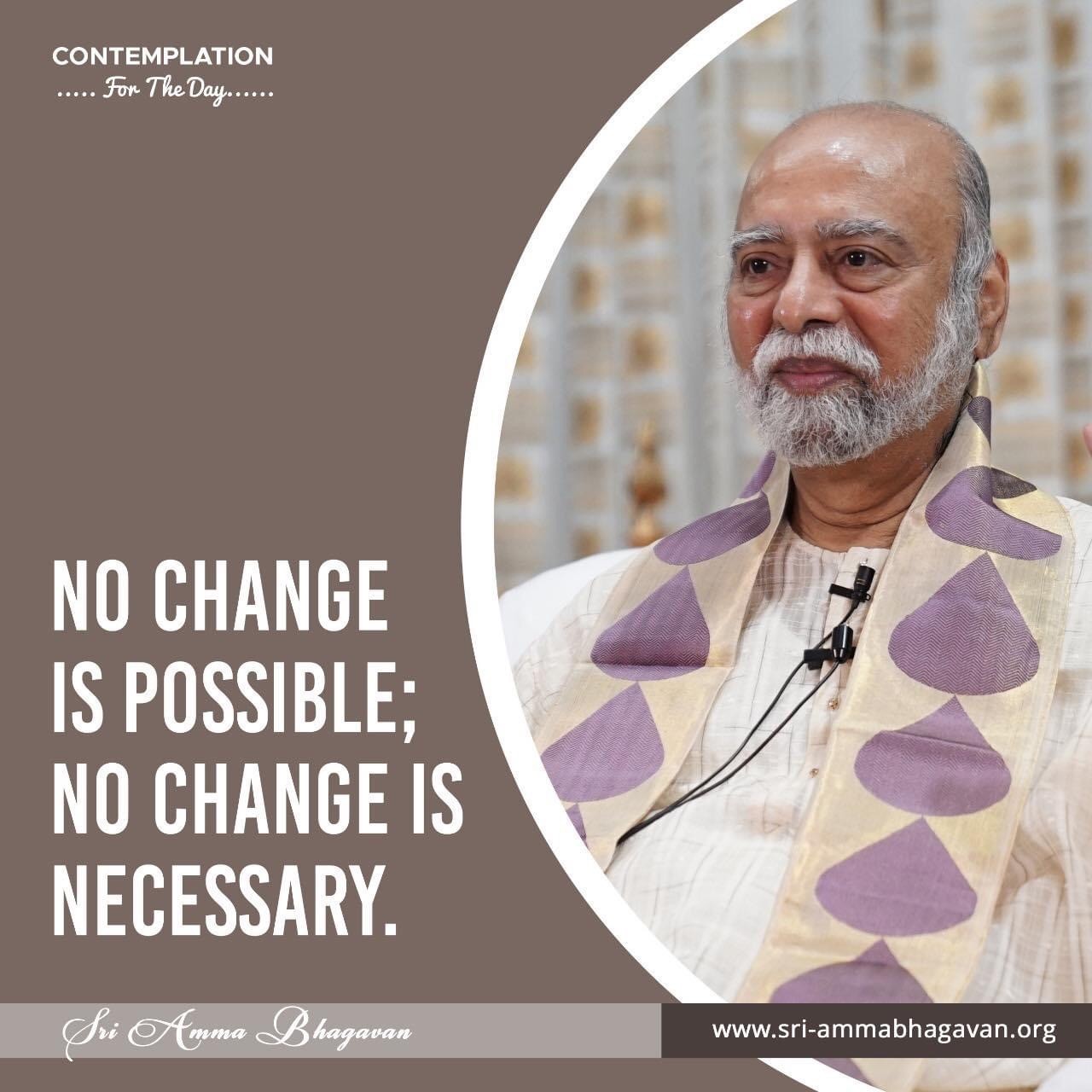 Top > シュリ・アンマ・バガヴァンによる教え > 今日の黙想 > 変えることは不可能です;変える必要はありません。 2024年1月3日 2025年7月20日 2024/1/3 今日の黙想 変えることは不可能です;変える必要はありません。 シュリ アンマ バガヴァン CONTEMPLATIONFor The Day NO CHANGEIS POSSIBLE;NO CHANGE ISNECESSARY. Sri Amma Bhagavan Post Share LINE note URLコピー -今日の黙想