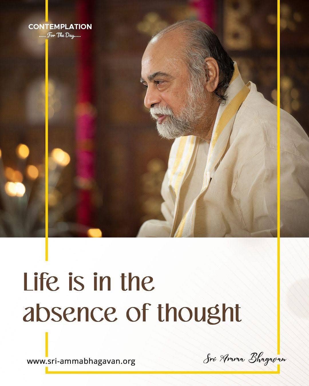 Top > シュリ・アンマ・バガヴァンによる教え > 今日の黙想 > 生きることは思考の無い中にあります。 2025年10月6日 2025年10月7日 2025/10/6 今日の黙想 生きることは思考の無い中にあります。 シュリ アンマ バガヴァン CONTEMPLATIONFor The Day Life is in theabsence of thought Sri Amma Bhagavan Post Share LINE URLコピー -今日の黙想 -思考