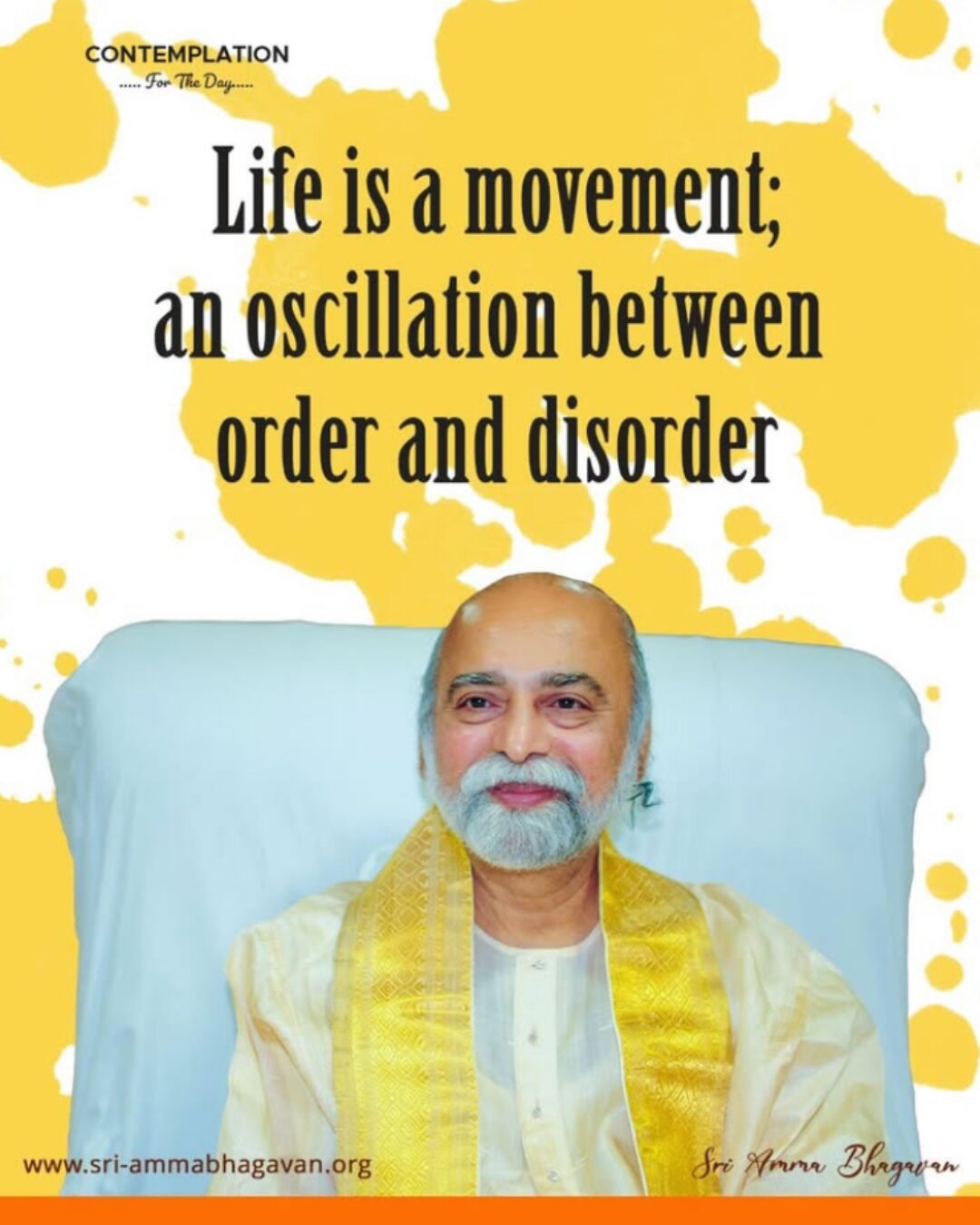 Top > シュリ・アンマ・バガヴァンによる教え > 今日の黙想 > 生命は動きです。秩序と無秩序の間を揺れ動く振動です。 2025年4月30日 2025年7月20日 2025/4/30 今日の黙想 生命は動きです。秩序と無秩序の間を揺れ動く振動です。 シュリ アンマ バガヴァン CONTEMPLATIONFor The Day Life is a movement;an oscillation betweenorder and disorder Sri Amma Bhagavan Post Share LINE note URLコピー -今日の黙想 -生命