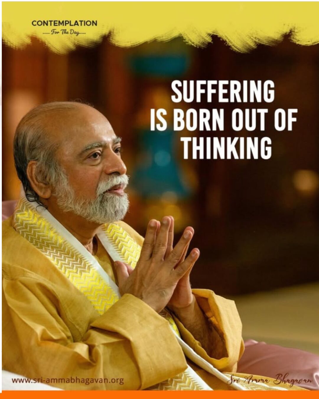 ホーム > シュリ・アンマ・バガヴァンによる教え > 今日の黙想 > 苦しみは思考から生じます 2025年5月5日 2025年7月20日 2025/5/5 今日の黙想 苦しみは思考から生じます シュリ アンマ バガヴァン CONTEMPLATIONFor The Day SUFFERINGIS BORN OUT OFTHINKING Sri Amma Bhagavan Post Share LINE note URLコピー -今日の黙想 -思考, 苦しみ