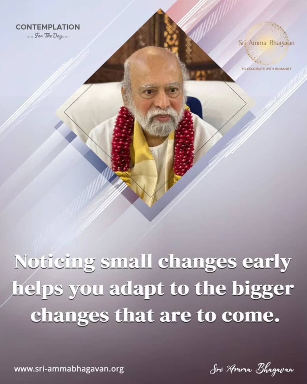 Top > シュリ・アンマ・バガヴァンによる教え > 今日の黙想 > 小さな変化に早めに気づくことは、これからやってくるより大きな変化にあなたが適応することを助けます 2026年1月7日 2026年1月8日 2026/1/7 今日の黙想 小さな変化に早めに気づくことは、これからやってくるより大きな変化に、あなたが適応することを助けます シュリ アンマ バガヴァン CONTEMPLATIONFor The Day Noticing small changes earlyhelps you adapt to the biggerchanges that are to come. Sri Amma Bhagavan Post Share LINE note URLコピー -今日の黙想