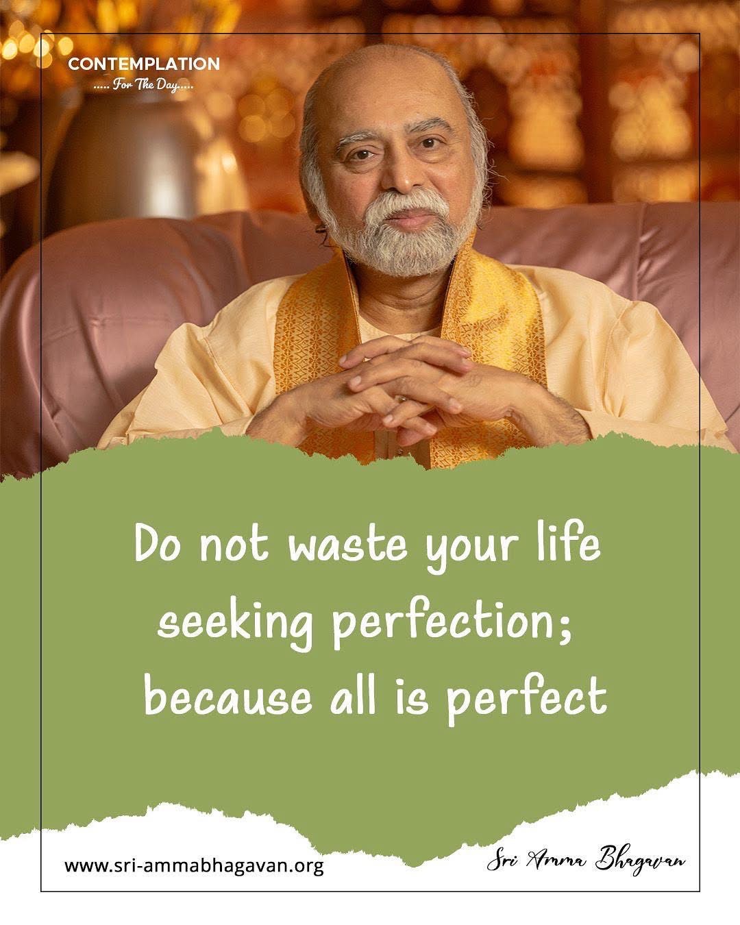 ホーム > シュリ・アンマ・バガヴァンによる教え > 今日の黙想 > 完璧を探し求めることにより人生を浪費しないでください。なぜなら、全てが完璧だからです。 2025年7月3日 2025年7月20日 2025/7/3 今日の黙想 完璧を探し求めることにより人生を浪費しないでくださいなぜなら、全てが完璧だからです シュリ アンマ バガヴァン CONTEMPLATIONFor The Day Do not waste your lifeseeking perfection;because all is perfect Sri Amma Bhagavan Post Share LINE note URLコピー -今日の黙想